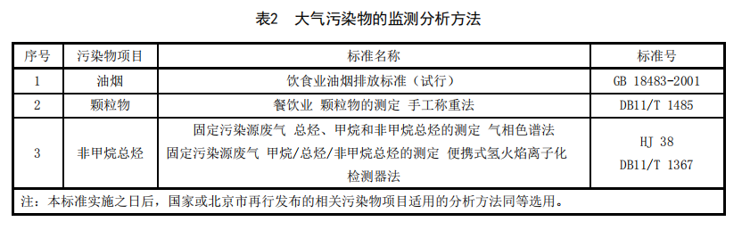 餐飲業大氣污染物的分析測定應按照表2規定的方法執行。